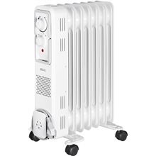 Olejový radiátor se sedmi žebry 3 stupně nastavení 500 / 1000 / 1500 W Plynule regulovatelný termostat, dvojitá tepelná pojistka, světelné kontrolky zapnutí Madlo a kolečka pro snadné přenášení Prostor …