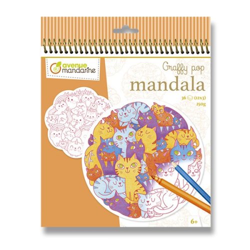 Omalovánky Avenue Mandarine Graffy Pop Mandala s předkreslenými motivy mandal s kočkami.