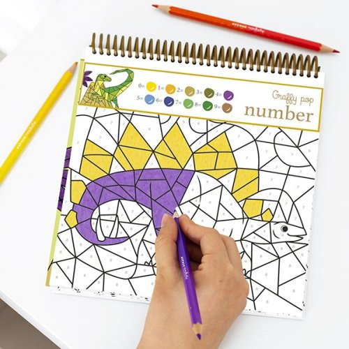 Omalovánky Avenue Mandarine Graffy Pop Number s motivy dinosaurů určené k vybarvení pomocí čísel. Každá jednotlivá barva je spojena s daným číslem od 0 do 9. Ideální pro procvičování jemné motoriky a učení barev. Omalovánky obsahují 24 listů, 12 motivů po 2 ks. Gramáž 160 g. Vhodné pro děti od 6 let,,Rozměry balení: 20 x 25,5 cm.