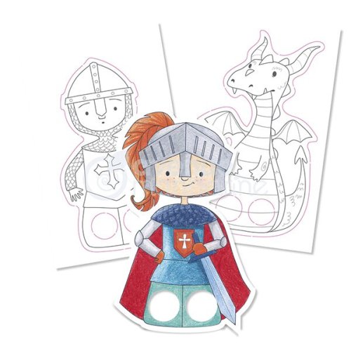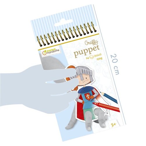 Omalovánky Avenue Mandarine Graffy Puppet s motivy draků a rytířů. Omalovánky předem připravené a upravené pro následné použití jako prstové loutky, stačí je vybarvit a hrát si. Omalovánky obsahují 24 listů, 12 motivů po 2 ks, kroužková vazba. Lze použít na techniky: pastelky, fixy, akvarel atd. Gramáž 250 g. Vhodné pro děti již od 5 let,,Rozměry 10 x 20 cm