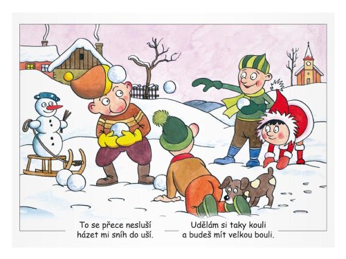 Dětské omalovánky MFP - Zima. Udělejte si pohodové odpoledne s dětmi a vybarvěte si obrázek. Tyto omalovánky jsou jednoduché s velkými obrázky, tudíž vhodné i pro ty nejmenší děti. Vybarvování obrázků pomůže rozvíjet řadu schopností a dovedností, zejména má velký vliv na jemnou motoriku ruky. Zakoupit si u náš můžete i kvalitní barevné pastelky.Počet stran: 16Ilustroval: J. PospíchalFormát omalovánek: A5Počet obrázků: 8 (zpívání koled, stavění sněhuláka, sáňkování aj.) - U každého obrázku je Vánoční básnička.VAROVÁNÍ:Nevhodné pro děti do 3 let. Nebezpečí vdechnutí a spolknutí malých částic.Uvedená cena je za 1 ks.
