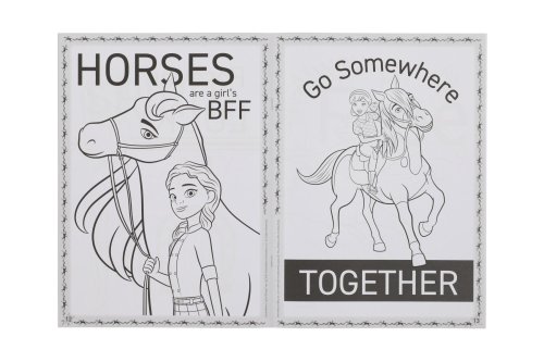 Omalovánky s motivem koní. Obsahují 24 stran. Rozměr 200 x 273 mm.