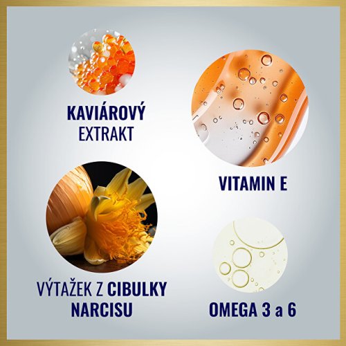 Omlazující denní péče pro velmi zralou pleť s výtažkem z kaviáru vyrovnává hluboké vrásky, zpevňuje pleť a zvyšuje její elasticitu.