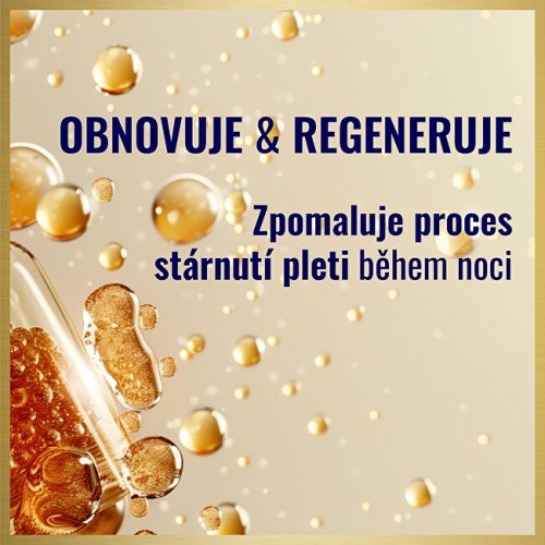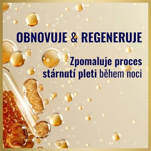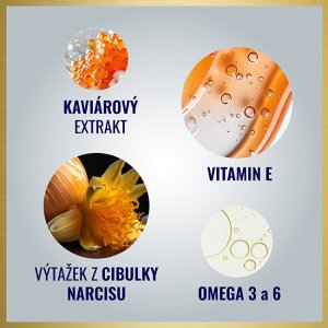 Omlazující noční péče pro velmi zralou pleť s výtažkem z kaviáru vyrovnává hluboké vrásky, zpevňuje, regeneruje a vyživuje pleť během noci.