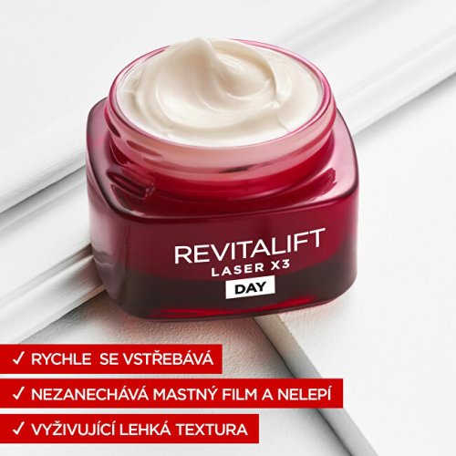 Pleťový krém Revitalift Laser X3 sice není laserové ošetření, ale svými účinky ve vyhlazení vrásek se k němu dokáže přiblížit. Krém efektivně vyhlazuje vrásky, navrací pleti pružnost a sjednocuje její tón. Přináší viditelné výsledky již po 4 týdnech! Vhodné pro věkovou kategorii od 40 do 60 let.