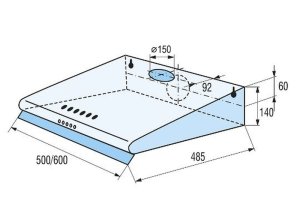 Odsavač par/Tlačítkové ovládání/Výkon odsavače 265 m3/h/3 výkonové rychlosti/LED osvětlení 1x 4 W/Nerez/Šířka 60 cm