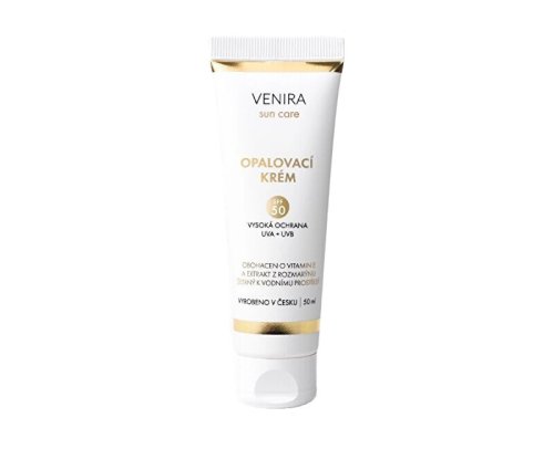 Opalovací krém s nejvyšší možnou ochranou a faktorem 50 je vhodný pro každého, kdo se chystá trávit čas na slunci. Na krém by rozhodně neměli zapomínat především maminky s dětmi, jelikož právě dětská kůže je velmi jemná a náchylná ke spálení i bez přímého slunečního záření, ale i lidé s kůží citlivou či senioři. Antioxidační a ochranné účinky na kožní buňky, které mají na starosti jojobové estery a vitamín E, si jistě oblíbí každý z vás. S opalovacím krémem zabráníte negativním vlivům slunečnímu záření, jako je začervenalá či dokonce spálená kůže a následná bolest s otokem. Pravidelné používání krému při opalování také snižuje předčasné stárnutí pleti a tvorbu vrásek, čemuž se při častém vystavování pokožky slunečnímu záření určitě nevyhnete. S účinným složením se dočkáte i regenerace poškozených buněk souvisejících s UV zářením. Pokožka se navíc po aplikaci krému bude cítit uvolněná, chráněná a hydratovaná. JAKÉ UV FILTRY V KRÉMU NAJDU? Butyl Methosydibenzoylmethane (nazývaný též avobenzon) - patří mezi sluneční filtr chránící pokožku před škodlivými paprsky s nejvyšší četností použití v přípravcích určených pro opalování.