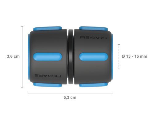 Rychlá oprava poškozených hadic 1/2 - 5/8 coulu nebo jejich prodloužení. Poškozenou část vyřízněte a oba konce hadice spojte. Dotykové body SoftGrip zajišťují bezpečnou manipulaci, i když jsou mokré. Pohodlně se drží, dokonce i za chladného počasí, ve srovnání s kovovými díly pro zavlažování. Barevné označení pro snadné připojení k hadicím Fiskars. Univerzální připojení je kompatibilní s ostatními značkami. Výška: 11,6 cm, délka: 6,8 cm, šířka: 3,6 cm. Hmotnost: 0,02 kg.