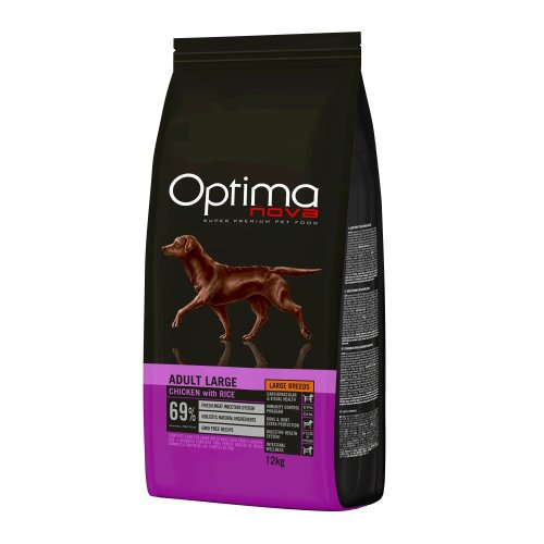 OPTIMAnova Dog Adult Large Chicken & Rice složené z kvalitních bílkovin a lehce stravitelných sacharidů v kombinaci s prospěšnými tuky. Krmivo obohacené o vitamíny, minerální látky a antioxidanty.