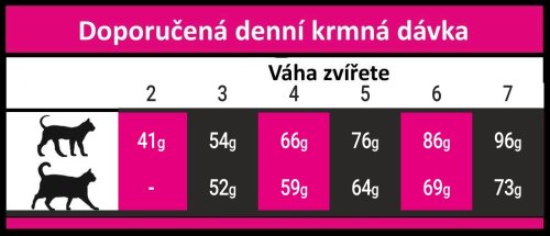 Snadno stravitelné sacharidy, pro zajištění kvalitní srsti, kůže a podporu trávení. Obsah omega 3 a 6 esenciálních mastných kyselin pro správné fungování mozku a optimální kondici kardiovaskulárního systému. Obsah zinku napomáhá udržovat zdravou kůži a lesklou srst. FOS + MOS s prebiotickými účinky přispívá ke zdraví trávícího traktu. Vysoká kvalita různých druhů masa, olejů a extraktů dělá krmivo velmi chutné i pro vybíravé kočky.