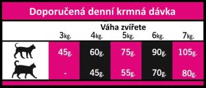 Snadno stravitelné sacharidy, pro zajištění kvalitní srsti, kůže a podporu trávení. Obsah omega 3 a 6 esenciálních mastných kyselin pro správné fungování mozku a optimální kondici kardiovaskulárního systému. Obsah zinku napomáhá udržovat zdravou kůži a lesklou srst. FOS + MOS s prebiotickými účinky přispívá ke zdraví trávícího traktu. Vysoká kvalita různých druhů masa, olejů a extraktů dělá krmivo velmi chutné i pro vybíravé kočky.