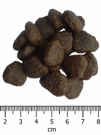 Analytické složky: Hrubý protein 27 %, hrubý olej a tuky 16 %, EPA+DHA 2.550 mg / kg, hrubá vláknina 2,75 %, hrubý popel 7,5 %, vápník 1,10 %, fosfor 0,85 %.