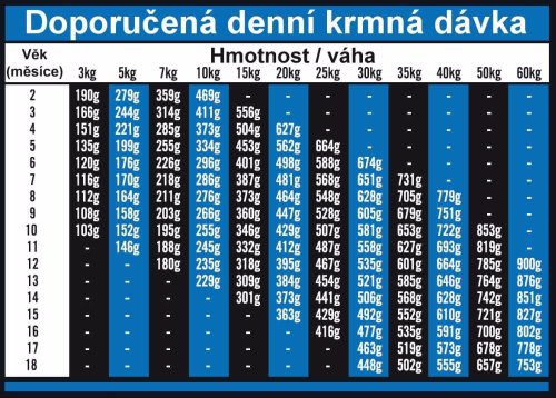 Analytické složky: Hrubý protein 28 %, hrubý olej a tuky 17 %, EPA+DHA 650 mg / kg, hrubá vláknina 1,95 %, hrubý popel 7 %, vápník 1,30 %, fosfor 1,10 %.