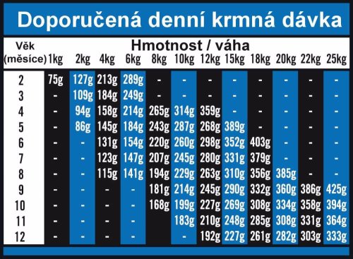 Snadno stravitelné sacharidy, pro zajištění podpory trávení. Immunity control program přínosný pro nervový, imunitní a kardiovaskulární systém. Obsah zinku, vitamínu A a biotinu napomáhá udržovat zdravou kůži a lesklou srst, správnou funkci imunitního systému a plicní a střevní sliznice. FOS + MOS s prebiotickými účinky přispívá ke zdraví trávícího traktu. Rovnováha minerálních látek a vitamínů podporují maximální růst štěněte a optimální vývoj kostí a svalů. Esenciální mastné kyseliny pro správnou funkci mozku, brání také opotřebení nervového systému.
