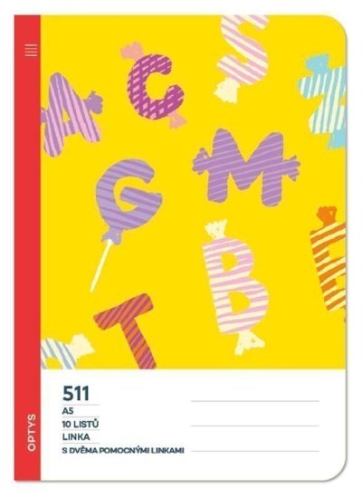 Sešit 511 je určen pro děti na nižších stupních základní školy. Formát A5 má linku o šířce 20 mm. Sešit o 10 listech má motiv písmene. Piktogram na hřbetu dětem pomáhá rozlišit, jestli je sešit vhodný do matematiky, psaní, prvouky nebo jiného předmětu. Učitelům tak usnadňuje komunikaci se žáky. Tento školní sešit OPTYS, stejně jako celou řadu, jsme vyvinuli ve spolupráci s grafickými designéry i těmi nejpovolanějšími – učiteli. Díky tomu je maximálně funkční. Zároveň má moderní design, který se žákům zalíbí. Z piktogramu na hřbetu a obálky sešitu hned vidíte číslo, formát, počet stran i to, zda je sešit čistý, linkovaný, čtverečkovaný. Česká výroba v naší tiskárně Optys zaručuje špičkovou kvalitu i dostupnost produktů.