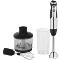 Multifunkční ruční mixér 3 v 1 s 800 W motorem Jednoduché sekání, šlehání a mixování Plynulá regulace výkonu Univerzalní sekací nůž vhodný na přípravu mletého masa, ořechů, drcení ledu Mixovací nádoba s kapacitou 0,5l Šlehací nádoba s kapacitou 0,6l Jemný povrch a ergonomický design Snadné čištění, všechny demontovatelné díly lze mýt v myčce nádobí