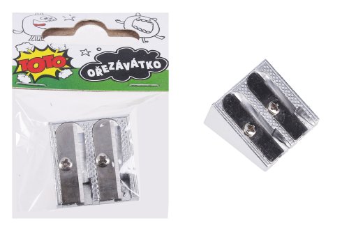 Kovové ořezávátko na 2 tužky.