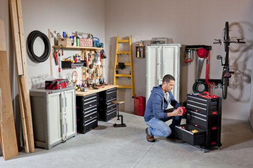 Na stranách boxu najdete rukojeti pro pohodlné přenášení. Ať už si ho chcete naložit do auta, vzít si ho na zahradu nebo uklidit do dílny, manipulace s ním je jednoduchá. Organizér je vybavený jednou prostornou zásuvkou, do které uložíte nářadí či jiné pomůcky. Máte je vždy po ruce a připravené k použití.