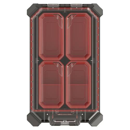 Odolný korpus zhotovený ze směsi polymerů Mechanicky odolné průhledné polykarbonátové víko Blokovací systém pro spojení s MSX Kovové panty Pevné těsnění 4 funkční boxy Délka: 368 mm Šířka: 228 mm Výška: …