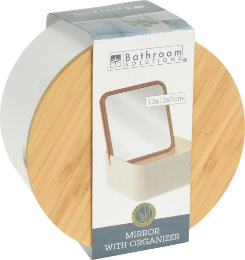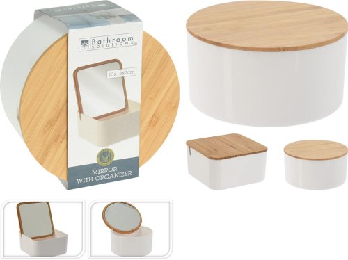 Organizér se zrcátkem 13 cm, PH/bambus, hranatý, kulatý mix.