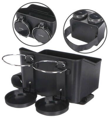 Organizér/držák nápojů CAR STORAGE 2 značky Sixtol vám zpříjemní každou cestu autem. Jednoduše jej připevníte na loketní opěrku a můžete do něj odložit 2 nápoje do průměru 7,5 cm. To ale není zdaleka vše! V praktických přihrádkách o velikostech 17,5 x 10,5 x 11 cm a 17,5 x 3 cm si můžete uschovat své cennosti. Mobilní telefon, klíče a peněženku už tak nebudete muset hledat po celé kabině vozu, ale budete je mít pěkně po ruce. Koupí tohoto organizéru navíc potěšíte i zbytek osazenstva na zadních sedačkách, protože na pití lehce dosáhnou. V černém provedení navíc bude ladit s každým interiérem.
