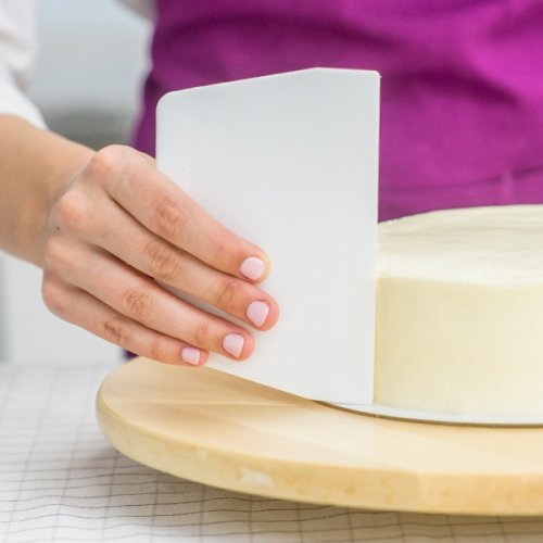 Hranatou plochou plastovou stěrku, chcete-li cukrářskou kartu, využijete při práci s těstem na plechu, především u litých těst, kdy je třeba mít plochu rovnoměrně vysokou .