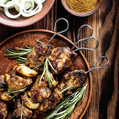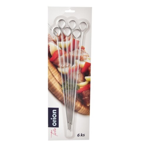 Sada šesti kusů kovových jehel na přípravu špízů.