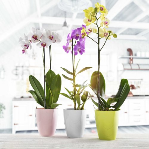 Květináč pro pěstování orchidejí by měl mít specifické parametry, jelikož orchideje jsou citlivé na světlo a vlhkost. Ty splňuje dekorativní květináč Ornella, který má vyvýšené dno a díky tomu kořeny rostliny nejsou trvale ponořeny do vody. Dalším benefitem zvýšeného dna a kónického tvaru květináče je optimální provzdušnění kořenů. Květináč Ornella vyrobený z odolného plastu nabízíme ve čtyřech barvách a dvou velikostních provedení: průměr 11 cm a výška 12,5 cm nebo průměr 15 cm a výška 18 cm.