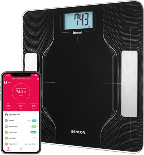 Moderní osobní váha Sencor SBS 8002BK vám poskytne přehled o vaší fyzické kondici pomocí přesné analýzy tělesného složení. Přes Bluetooth se snadno propojí s aplikací Sencor HOME pro iOS i Android, a zároveň podporuje připojení ke Google Fit a Apple Health. Umožňuje vytvořit více uživatelských profilů, sleduje historii měření a poskytuje detailní přehled včetně výpočtu BMI, procenta tělesného tuku, vody, svalové hmoty i kostní hmoty. Váha také doporučuje denní kalorický příjem na základě naměřených hodnot. Je vybavena funkcí Auto-ON pro okamžité vážení při vstupu na váhu a 6 mm tvrzeným bezpečnostním sklem pro maximální odolnost. Nabízí volbu jednotek (kg/lb), automatické vypnutí při nečinnosti a napájení dvěma AAA bateriemi, které jsou součástí balení. Skvělý pomocník pro každodenní kontrolu zdraví celé rodiny.