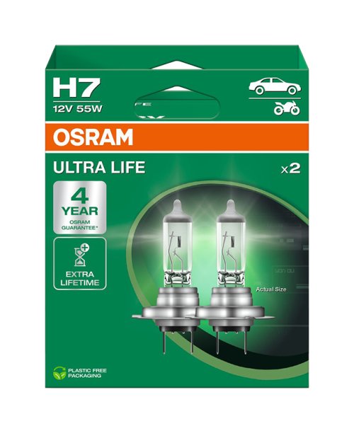 Automobilová žárovka OSRAM ULTRA LIFE je oblíbená, pokud jde o životnost. V porovnání se standardní halogenovou žárovkou má až čtyřikrát delší životnost a vydrží až 100 000 km (při průměrném ročním nájezdu 14 259 km a 60 % svícení). Je proto ideální pro řidiče, kteří často jezdí a používají světla pro denní svícení.