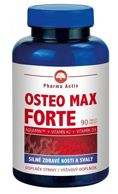 Osteo Max Forte 1200 mg je doplněk stravy obsahující unikátní mořský komplex AquaminTM, který je zdrojem vápníku, hořčíku a dalších až 74 minerálů. Vápník pocházející z AquaminuTM je ze 100% organický a přírodní. Je získáván z mineralizovaných mořských řas rodu Lithothamnion sp. pocházejících ze dna Atlantického oceánu. Vápník přispívá k normálnímu stavu kostí, k normální činnosti svalů a k normální srážlivosti krve. Vitamín D3 přispívá k normálnímu vstřebávání a využití vápníku a k udržení jeho hladiny v krvi na normální úrovni, a rovněž k udržení normálního stavu kostí a zubů. Také přispívá k normální funkci imunitního systému. Vitamín K2 přispívá k udržení normálního stavu kostí. Synergické působení aktivních složek napomáhá udržení dobrého stavu kostí.