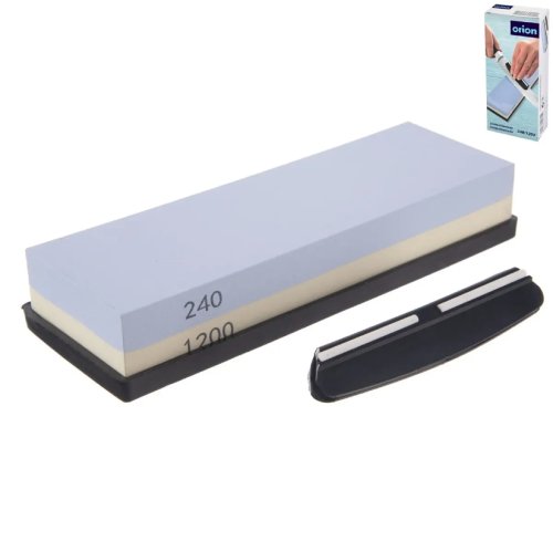Kvalitní kombinovaný brusný kámen se silikonovou protiskluznou podložkou a s vodicí svorkou s keramickými válečky. Ta při broušení napomáhá lepšímu udržení konstantního sklonu čepele nože vůči brusnému kameni. 2 stupně zrnitosti: modrý 240 je určen pro odstranění hrubších třísek z poškozené čepele – základní univerzální broušení, žlutý 1200 pro jemné finální dobrušování a leštění. Je vhodný na broušení nožů, nůžek, nářadí na opracování dřeva a zahradnického náčiní. Bez použití svorky se snažte brousit čepel pod úhlem 15-20°. Před broušením se doporučuje kámen namočit do vody cca na 10 minut. Také během broušení je vhodné kámen vlhčit. Po použití nechte volně vyschnout a uskladněte. Materiál korund (kámen), silikon (podložka), plast ABS, keramika. Rozměry: samotný kámen 18 x 6 x 3 cm, s podložkou 18.5 x 6.5 x 3 cm, délka svorky 10 cm. Na čištění nepoužívejte chemické přípravky. Návod je součástí balení. EAN 8592381207250