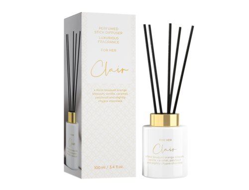 Prémiový osvěžovač vzduchu s odpařovacími tyčinkami. Zabalen do luxusně vzhlížející lesklé lahvičky se zlatou, kovovou zátkou. Odpařovací tyčinky mají černou barvu. Difuzér doplňuje krásná dárková krabička. Prémiová je i vůně, skládající se z květinové vůně pomerančového květu, vanilky, karamelu, pačuli s dotekem chypre čokolády. Velikost balení: 100 ml. Barva: bílá.