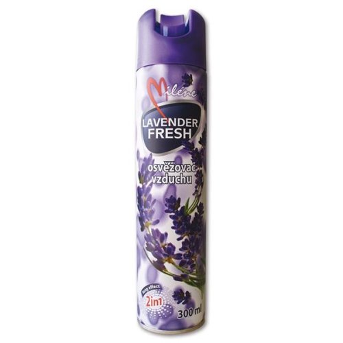 Osvěžovač vzduchu Miléne pohlcuje nežádoucí pachy a příjemně provoní váš domov i kancelář příjemnou dlouhotrvající levandulovou vůní Sprej o objemu 300 ml Množství v originálním balení 24 ks