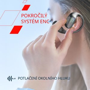 Objevte novou dimenzi poslechu díky otevřené technologii TWS, která přenáší zvuk pomocí vibrací vzduchu v blízkosti uší. Tato funkce poskytuje křišťálově čistý zvuk bez blokování uší, takže zůstanete plně propojeni s okolím, aniž byste museli obětovat kvalitu své oblíbené hudby. Perfektní řešení pro outdoorové aktivity i multitasking v živém prostředí – váš svět, vaše hudba, harmonicky sladěné.