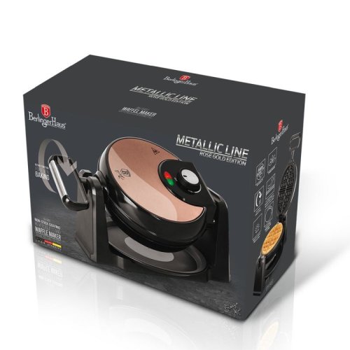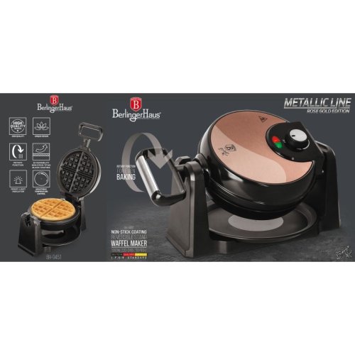 - příkon: 1000W- napětí: 220-240 V, 50/60Hz- velikost formy: 20,32 cm- příslušenství: plastový stojan- nepřilnavý Titanový povrch formy- barva: zlatorůžová- otočná funkce pro rovnoměrné pečení- kontrolky …
