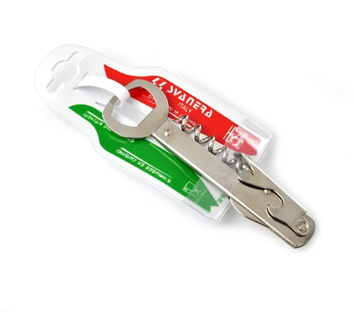 Kvalitní číšnický otvírák vyrobený z chromované nerezi. Obsahuje nástroje korunkový otvírák, vývrtku a malý nožík. Vhodný do myčky nádobí. Italský výrobce. EAN 8005498087061