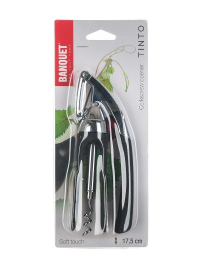 Otvírák na láhve TINTO 17,5 cm má pákový systém, který umožní otevření lahve rychle a bez námahy. Otvírák je vyrobený ze slitinu zinku s pochromovaným povrchem. Rukojeti jsou ze speciálního plastu, který má protiskluzovou úpravu. Výrobek není vhodný do myčky nádobí.