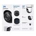 IP kamera-vnitřní a venkovní Obrazový snímač 1/2.8'' CMOS Rozlišení 2K 3MP (2304 × 1296 px) Objektiv 2.0±5%; Ohnisková vzdálenost: 3.9mm±5% Noční vidění IR LED (až 98 ft), plnobarevné noční vidění Rozsah zobrazení 360° horizontálně a 130° vertikálně Stupeň krytí IP65