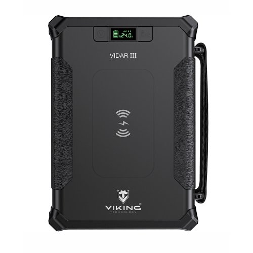 Outdoorová powerbanka Viking VIDAR III • Kapacita: 96000mAh/307.2Wh • Maximální výkon: 180W • Zabudované LED světlo • Široká škála vstupů a výstupů (USB-A, USB-C, Cigaretová zásuvka, DC-jack, WIRELESS Qi) • Možnost solárního napájení • Funkce Pass-Through • Odolnost IP65