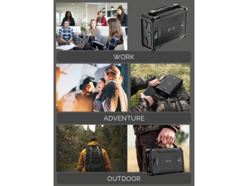 Klíčové vlastnosti: • Kapacita baterie 96000 mAh (307.2Wh) • Rychlé nabíjení přes USB-C nebo DC-JACK (nabíjecí výkon až 80 W) • Wireless bezdrátové nabíjení (10 W) • Fukce Pass-Through umožňuje současné nabíjení i používání powerbanky • LED displej - stav baterie v procentech, aktivní výstupy a jejich zátěž v ampérech • Powerbanku lze nabít solárním panelem o výkonu až 80 W • Možnosti nastavení výstupního napětí • Ideální pro napájení mobilů, tabletů notebooků a další běžné elektroniky • Díky zabudovanému LED světlu poslouží i jako nouzová svítilna • Hmotnost cca 3 kg a praktické rozměry pro snadný transport