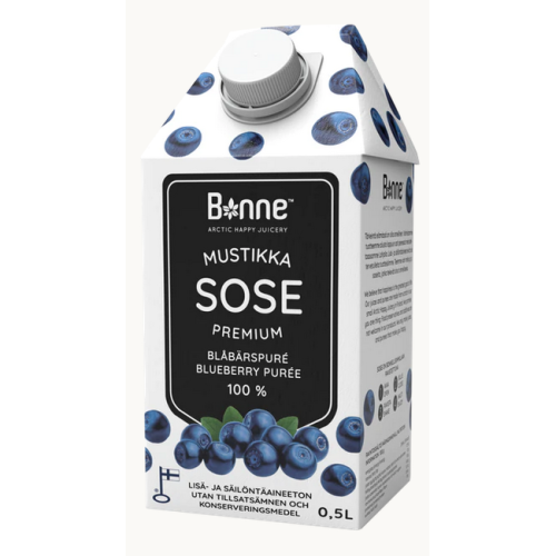 Ovocné pyré 100 % borůvky. Balení 0,5 l.