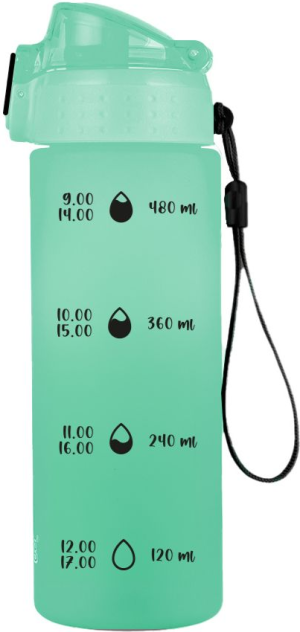 Láhev je vyrobena z kvalitního, zdravotně nezávadného materiálu - testovaná, neobsahuje BPA ani ftaláty. Vrchní část láhve je vybavena zámkem a otevíracím patentem, který funguje na principu změny polohy tlačítka (nahoru = zamčeno, dolů = otevřeno). Díky tomu je láhev snadno otevíratelná a zároveň chráněná proti nechtěnému vylití. Praktická šňůrka usnadňuje manipulaci. Průměr pítka je 2,5 cm. Vhodná do myčky na maximální teplotu 80°C. Objem 600ml. Láhev není vhodná na sycené nápoje.