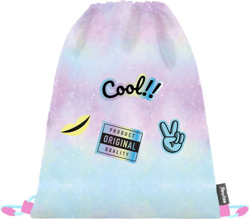 Sáček na přezůvky, do kroužků a jiné aktivity. Uzavírání stažením šňůrek. Možnost nosit i na zádech nebo připevnit ke školnímu batohu. Materiál 100% polyester.