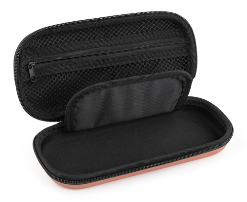 má jednu hlavní kapsu a jednu menší kapsičku opatřenou síťkou pod klopou je místo pro volné uložení psacích potřeb nebo jiných drobností pouzdro je opatřeno pevnými zipy