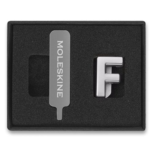 Balení obsahuje:, * ozdobu=písmeno k personifikaci zápisníku nebo diáře, * kovový šroubek pro upevnění ozdoby ke gumičce zápisníku nebo diáře, * speciální šroubovák, * návod k použití (v anglickém jazyce), Vyrobeno ze slitiny zinku