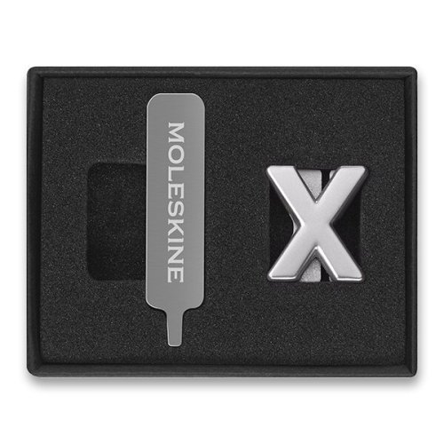 Balení obsahuje:, * ozdobu=písmeno k personifikaci zápisníku nebo diáře, * kovový šroubek pro upevnění ozdoby ke gumičce zápisníku nebo diáře, * speciální šroubovák, * návod k použití (v anglickém jazyce), Vyrobeno ze slitiny zinku
