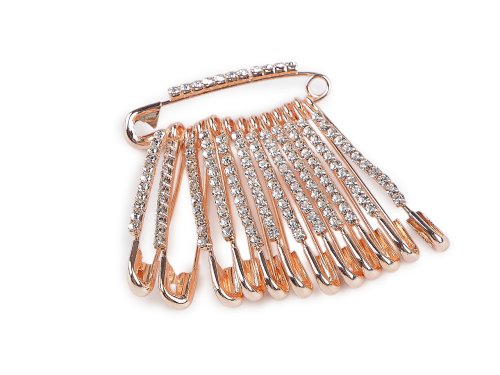 Spínací špendlík zdobený broušenými kamínky obohatí vaši sbírku stylových doplňků. Tento elegantní a zároveň praktický kousek dodá každému vašemu outfitu jemnou nadčasovou eleganci. Spínací špendlík není pouze estetickým doplňkem, ale též velmi praktickým pomocníkem v každodenním životě. Je ideální pro sepnutí šátků a šálů nebo jako zajímavý prvek na vašem saku, kabátu, šatech i halence. Na svazku je 12 ks špendlíků.
