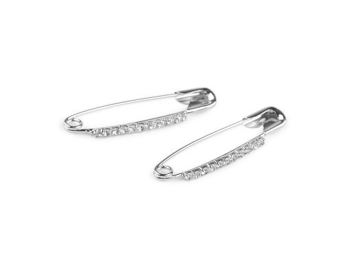 Ozdobný spínací špendlík s broušenými kamínky délka 39 mm - stříbrná (12 ks)