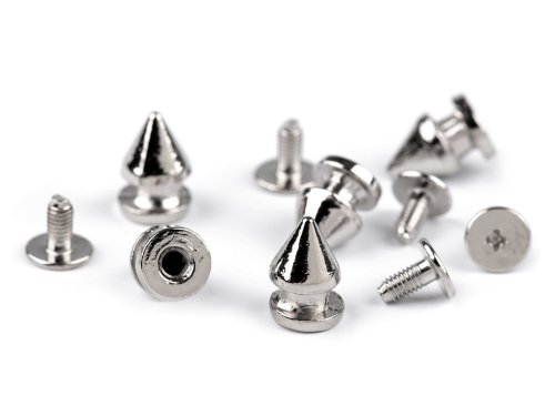 Šroubovací hroty ozdobí každou kabelku, psaníčka, oděvy, kožené bundy i boty. Skládají se ze dvou částí, které do sebe lehce zašroubujete. Můžete je použít i jako nožičky na kabelky. Délka po zašroubování obou částí je 13 mm. Hrot je vhodný pro látky s tloušťkou min. 0,5 mm.